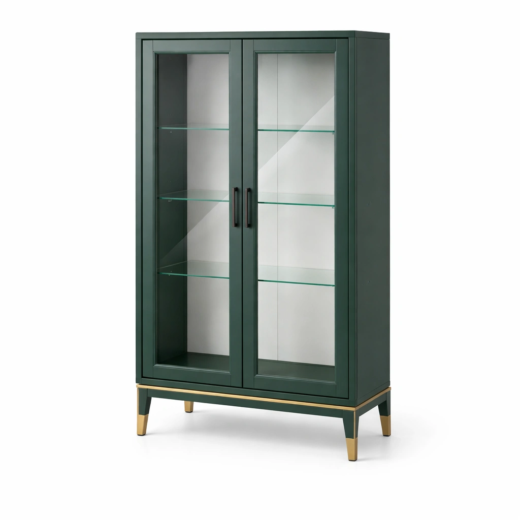 Vitrine MDF Holz Gehärtete Glasregale Dunkelgrün